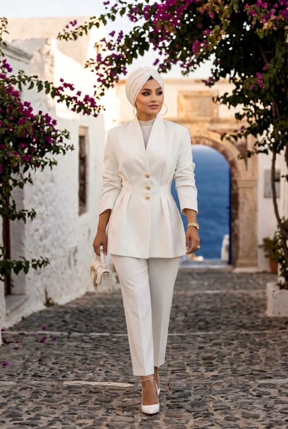Şehirli kadının ihtiyaçlarını en iyi anlayan kadın giyim mağazası konseptimizle, bu ceketi tasarlarken fonksiyonelliği ve estetiği ön planda tuttuk. Özellikle muhafazakar moda dünyasında fark yaratan bir tesettür giyim mağazası arayışında olanlar için bu ceket, vücut hatlarını zarifçe gizleyen ancak şıklığından ödün vermeyen kesimiyle dikkat çeker. Gold düğme detayları, ceketin sade beyaz zemininde parlayarak sofistike bir görünüm kazandırır.