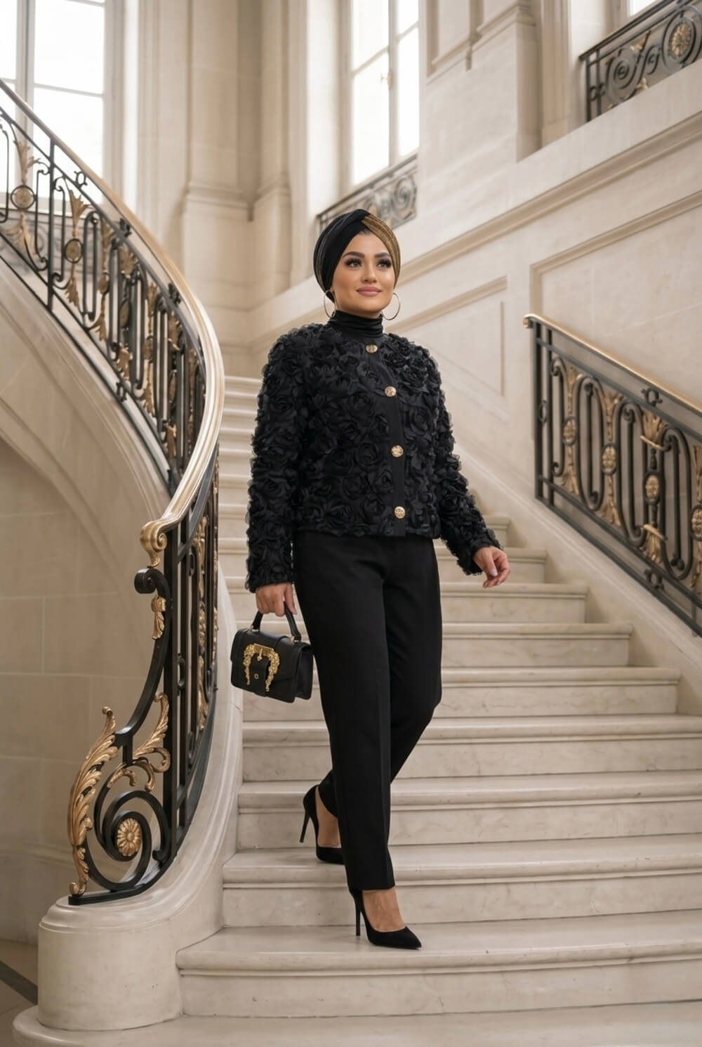 Pantolonlarla kombinlenen Güllü Siyah Ceket, her ortamda size eşlik eder. Ankara’nın en canlı noktalarından biri olan ankara etlik giyim mağazası dendiğinde akla gelen ilk duraklardan biriyiz. Siz de ankara etlik kadın giyim dünyasının en yeni trendlerini keşfetmek istiyorsanız, mağazamıza davetlisiniz. Özellikle ankara etlik tesettür giyim alanında uzmanlaşmış ekibimiz, bu ceketi en iyi şekilde nasıl kombinleyeceğiniz konusunda size rehberlik edebilir. Butik tarzın temsilcisi olan ankara butik kadın giyim konseptimiz, her kadının kendini özel hissetmesini sağlar.