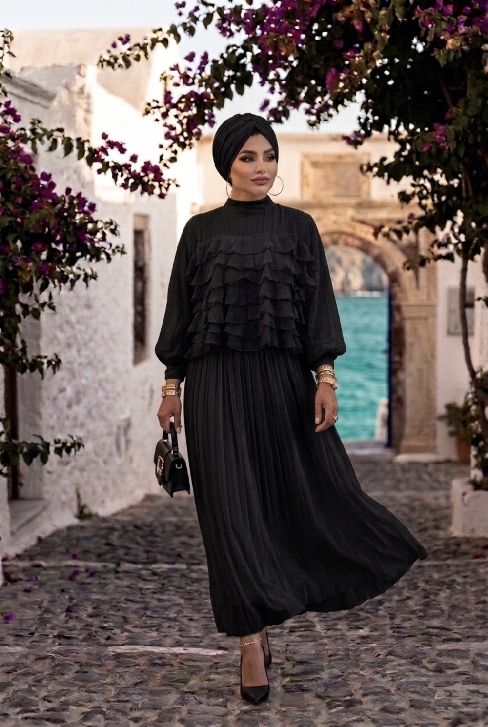 Şehirli kadının dinamik hayatına uyum sağlayan bu kadın giyim mağazası koleksiyon ürünü, özellikle tesettür modasında fark yaratmak isteyenlere hitap ediyor. Geniş ürün yelpazesiyle bilinen bir tesettür giyim mağazası deneyimi sunan Moda Nurhan, bu takımda geleneksel çizgileri modern bir yorumla harmanlıyor. Siyah Etekli Tasarım Takım, sadece bir kıyafet değil, aynı zamanda özgüveninizi yansıtan bir stil ikonu olarak öne çıkıyor. Bel kısmındaki ince detaylar ve eteğin akışkan formu, feminen bir silüet oluştururken hareket özgürlüğünüzü de kısıtlamıyor.