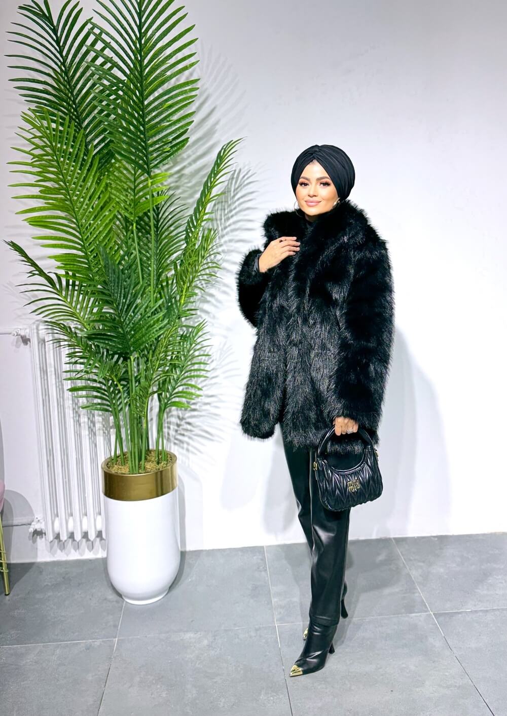 siyah-pelus-kurk yumuşak dokusu ve modern duruşuyla soğuk havalarda sıcaklık ve şıklığı bir arada sunar. Hafif yapısı sayesinde gün boyu konfor sağlayarak her kombine zarif bir dokunuş ekler.