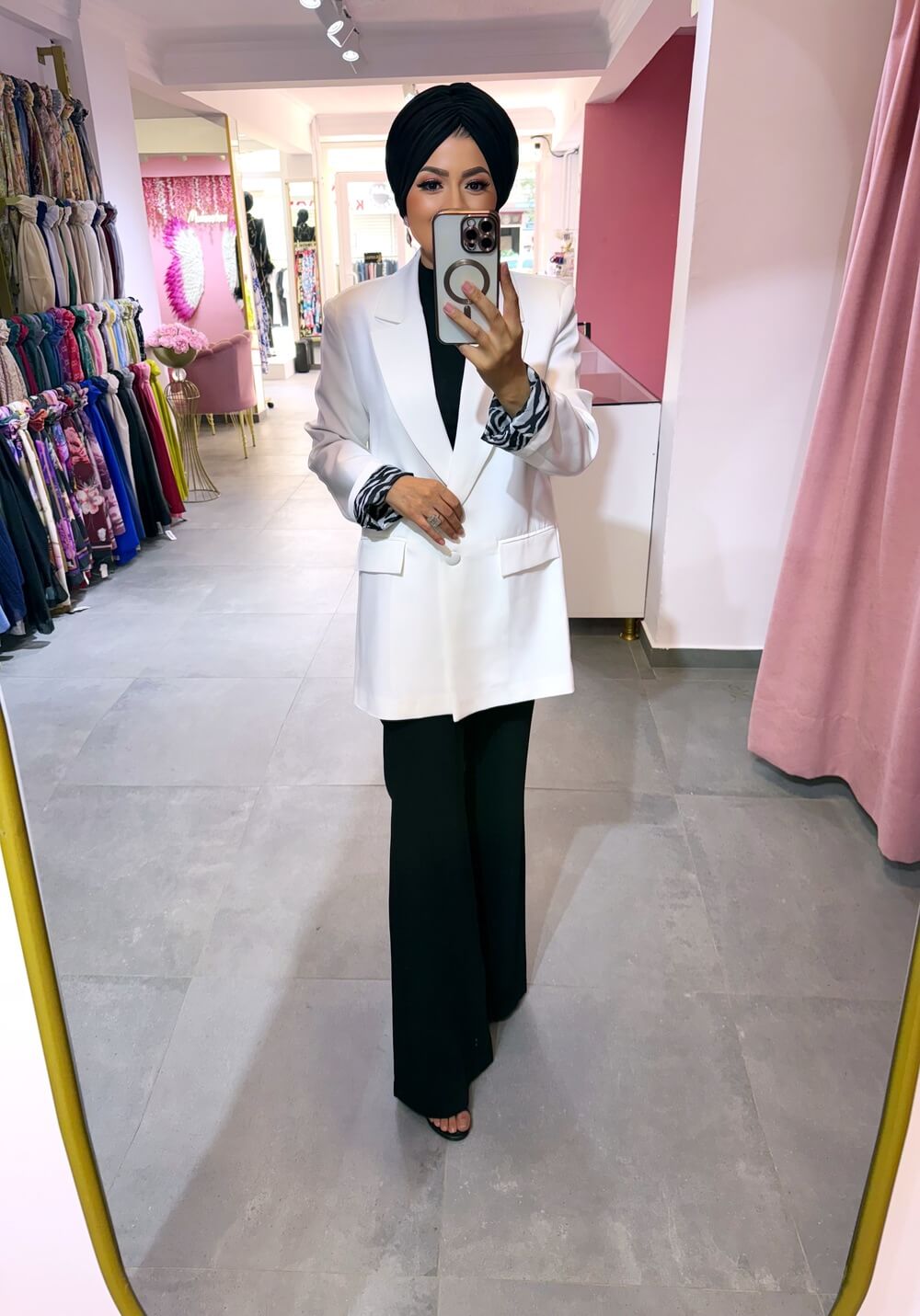 zebra-astarli-beyaz-ceket Rahat kesimi ve modern çizgileriyle dikkat çeken bu tasarım, iç kısmındaki zebra desenli astarıyla özgün bir stil sunar. Hafif yapısı sayesinde hem günlük kombinlerde hem de özel davetlerde rahatlıkla tercih edilebilir. Beyaz tonunun şıklığı, ceketin zarif yapısını daha da öne çıkarır.